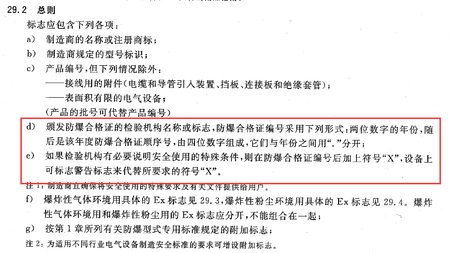 國家防爆標準GB3836.1中的對防爆標志也有相應的規定。