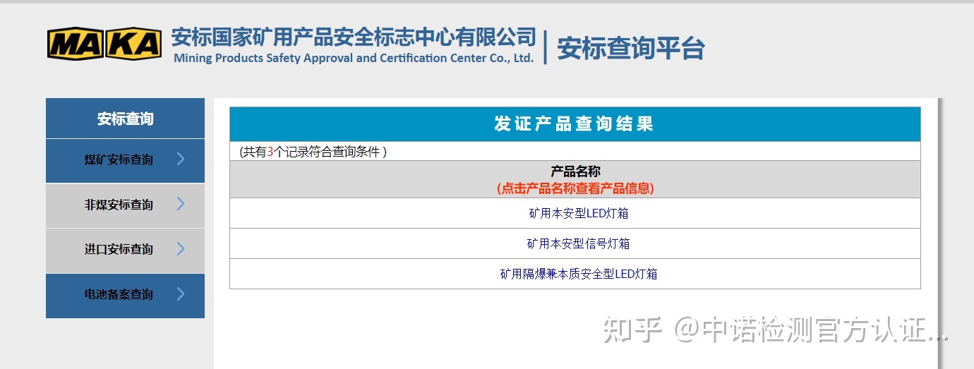 用戶只要輸入企業(yè)名稱或者安標(biāo)編號(hào)、產(chǎn)品名稱、型號(hào)任意一個(gè),都可以查詢到對(duì)應(yīng)的安標(biāo)企業(yè)和產(chǎn)品。如果用戶是要查詢某種安標(biāo)產(chǎn)品,比如具有煤安認(rèn)證的燈箱,那可以在煤礦安標(biāo)查詢這欄的產(chǎn)品名稱輸入產(chǎn)品名稱關(guān)鍵字“燈箱”,就會(huì)跳出有做過煤安認(rèn)證的有效期內(nèi)產(chǎn)品名稱帶有燈箱的產(chǎn)品目錄,用戶只需要點(diǎn)開細(xì)看就可以查找所需要的產(chǎn)品了。